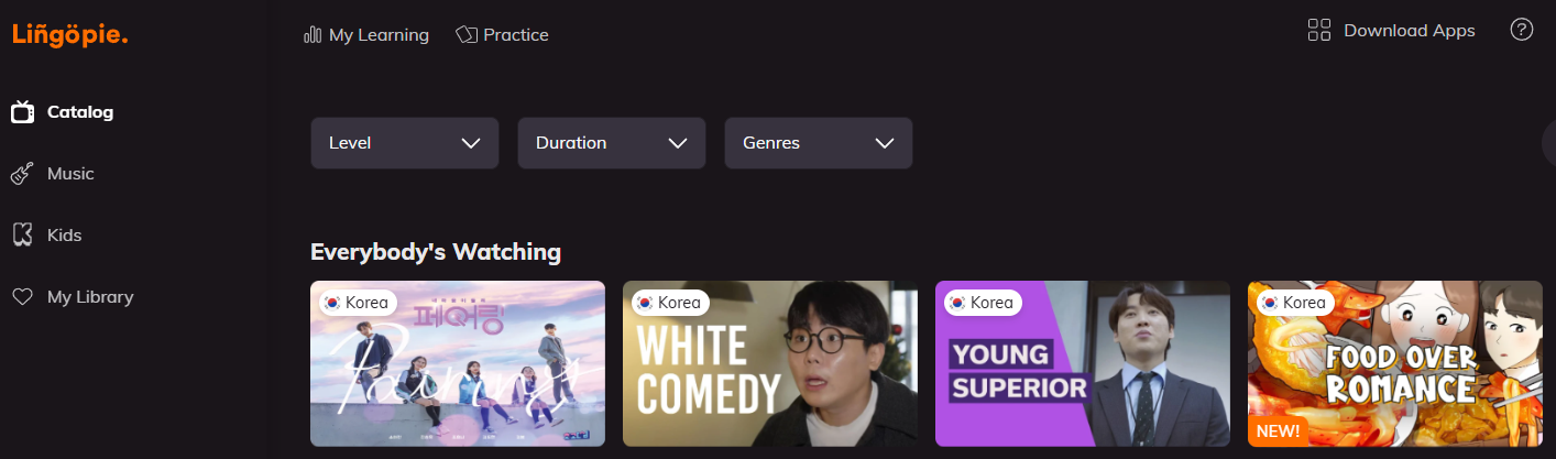 While watching Korean shows helps with listening skills and natural expressions, you'll learn much faster with learning tools like Lingopie that offer interactive subtitles, translations, and vocabulary tracking. Combining shows with structured learning gives you the best results.