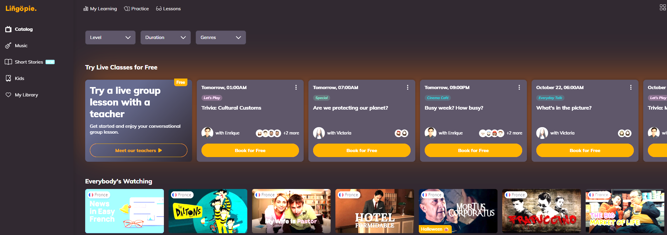 To hear how French speakers really use these expressions in conversation, try Lingopie. The platform lets you learn through real French TV shows and movies, so you can hear how oui, ouais, and ça marche sound in authentic dialogue. You’ll build listening skills, improve pronunciation, and understand the rhythm of natural French speech.
