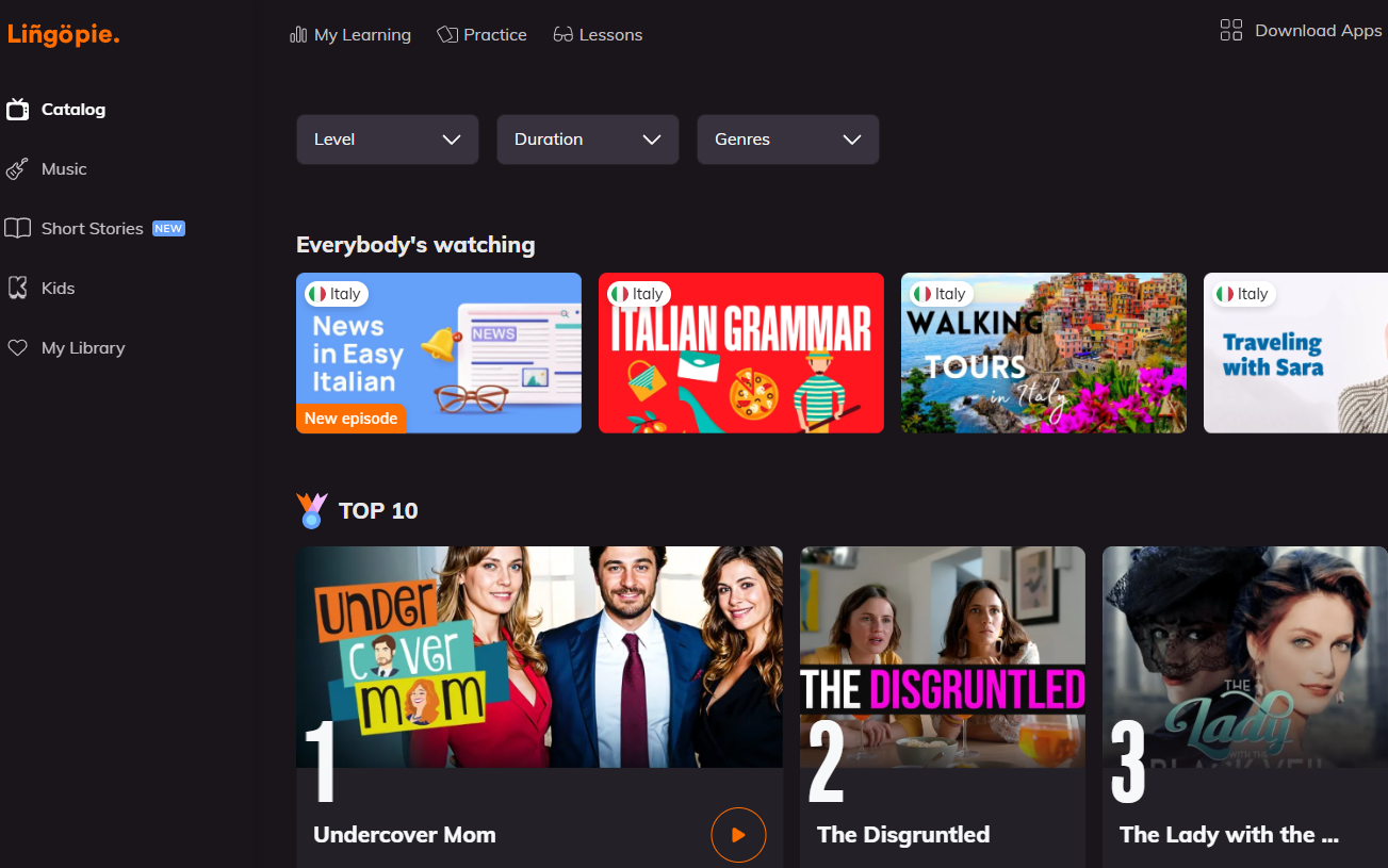 For learners wanting conversational skills and cultural fluency instead of gamified exercises, Lingopie is the best app to learn Italian.