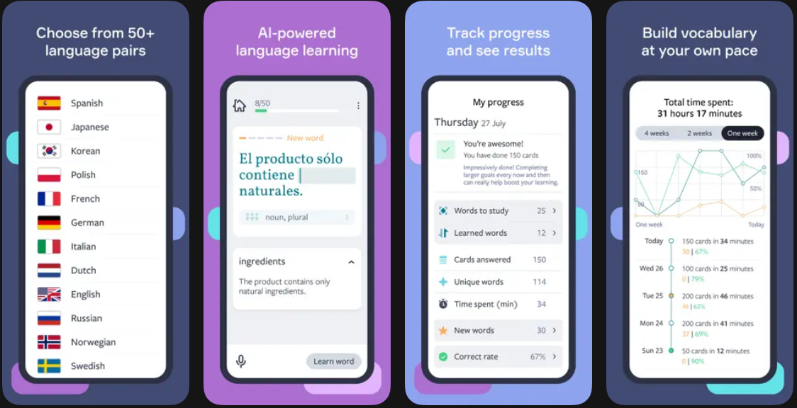 Lingvist strips language learning down to pure vocabulary acquisition through AI-powered flashcards and spaced repetition. The best feature is its adaptive algorithm that figures out which Italian words you're struggling with and drills them until they stick. Unlike apps that waste time teaching you "the bear drinks beer," Lingvist focuses on the 4,000-5,000 most frequently used Italian words that'll actually help you understand real conversations and texts.