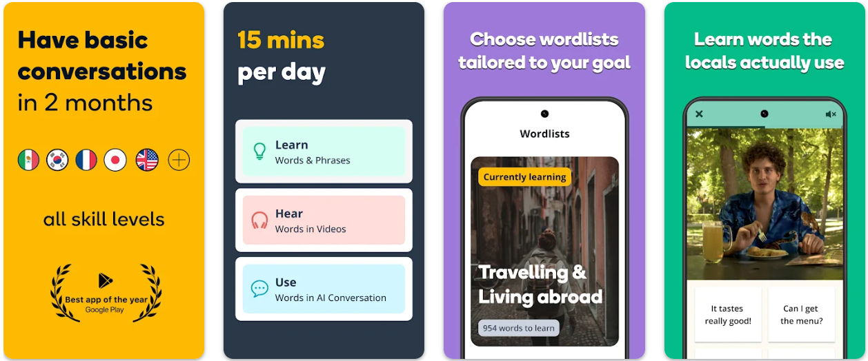 Best For: Visual learners who need vocabulary boost through native speaker videos