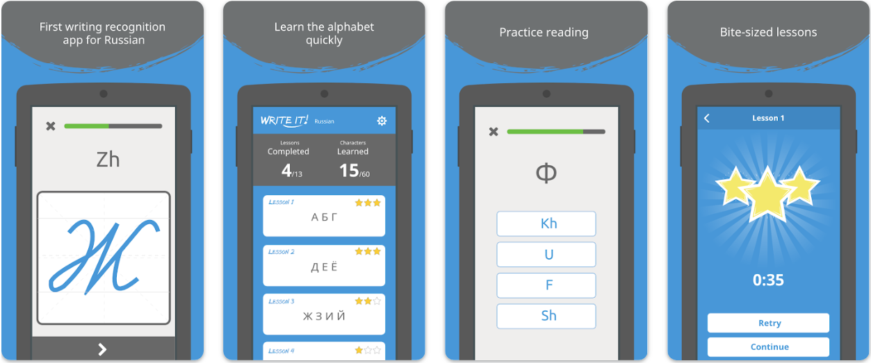 However, knowing the Russian alphabet visually is one thing; developing the muscle memory to write Russian words quickly is another. In fact, Write It! Russian only drills individual letters, not how letters connect in actual Russian words or basic vocabulary. Handwriting recognition can be frustratingly strict, especially with marks above letters like ё and й. Some Russian learners report missing letters (ъ, ь, ы) in certain versions.