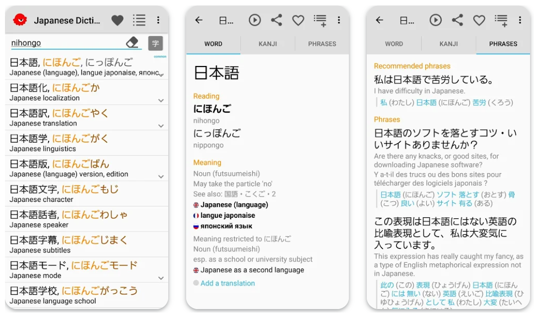 | 200,000+ word database with example sentences | Japanese-Japanese dictionary is limited |