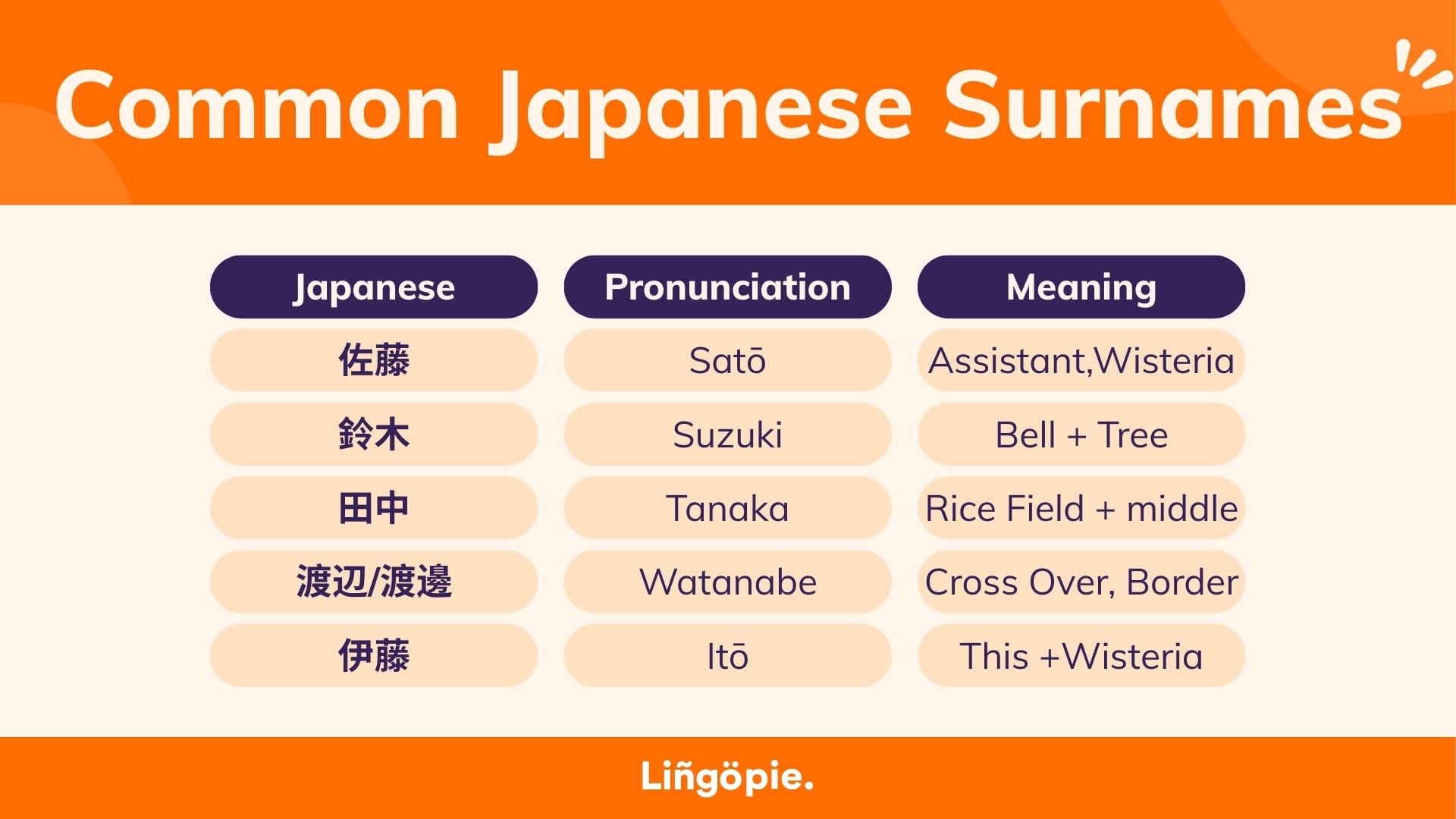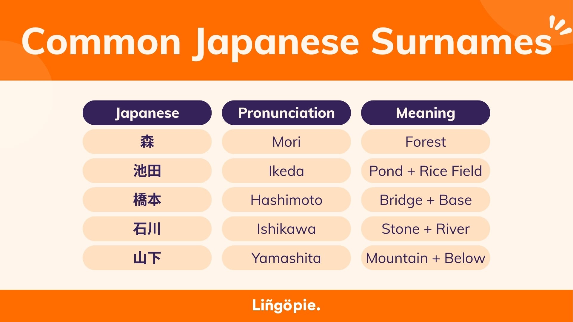 Many Japanese surnames follow recognizable patterns that can help you understand their meanings at a glance: