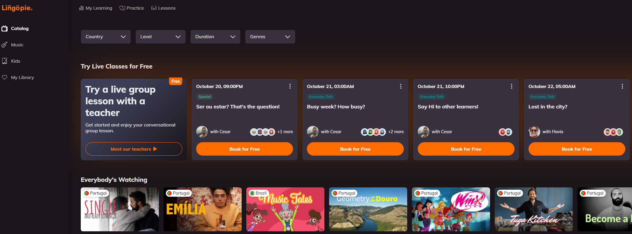 Try out Lingopie and have fun while you learn Portuguese! Give it a try and sign up for a free trial.