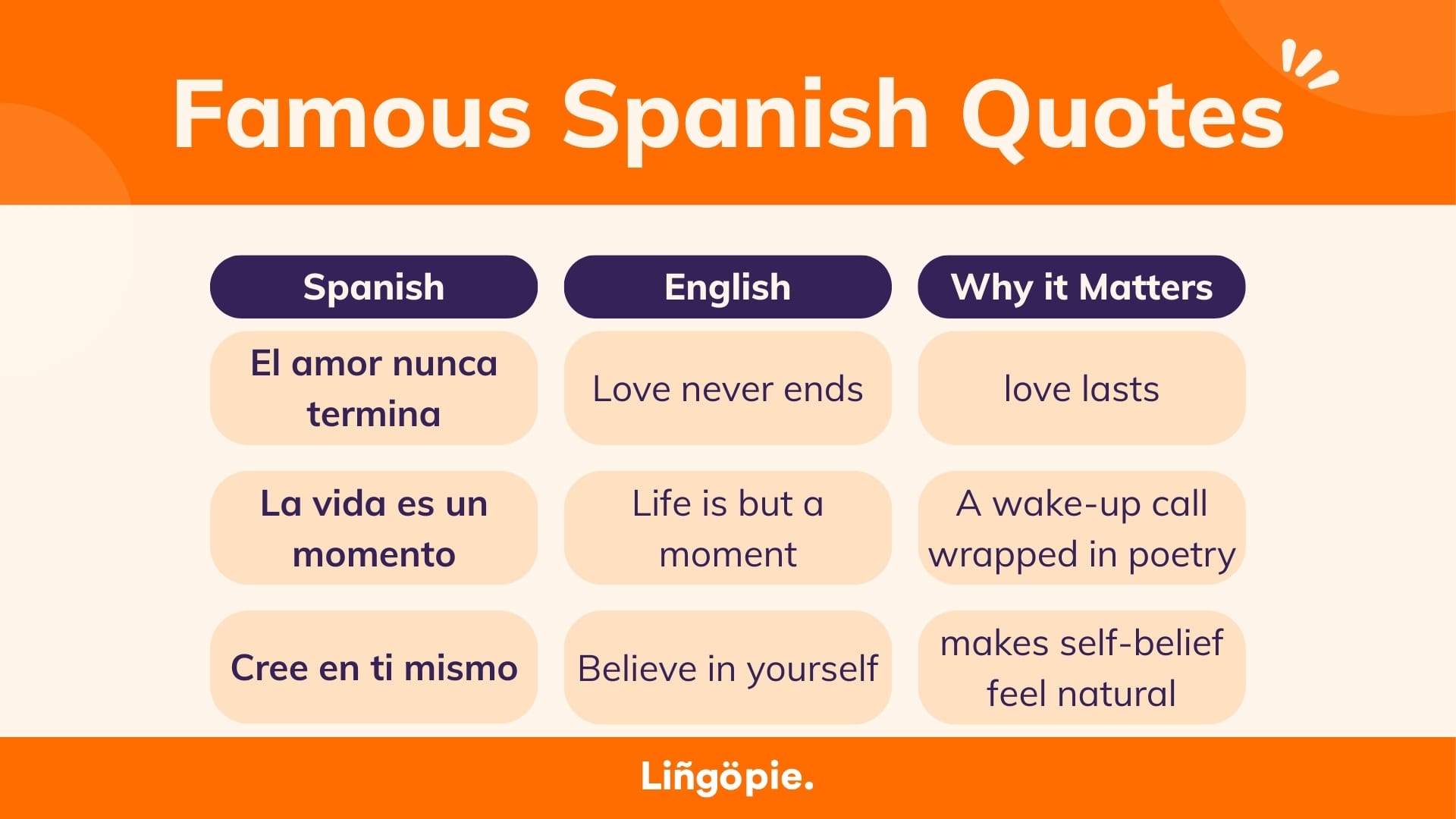 They offer glimpses into the rich literary heritage of Spanish, fostering appreciation for its beauty and eloquence. Moreover, famous quotes can be used as conversation starters, demonstrating cultural knowledge and sparking meaningful discussions.