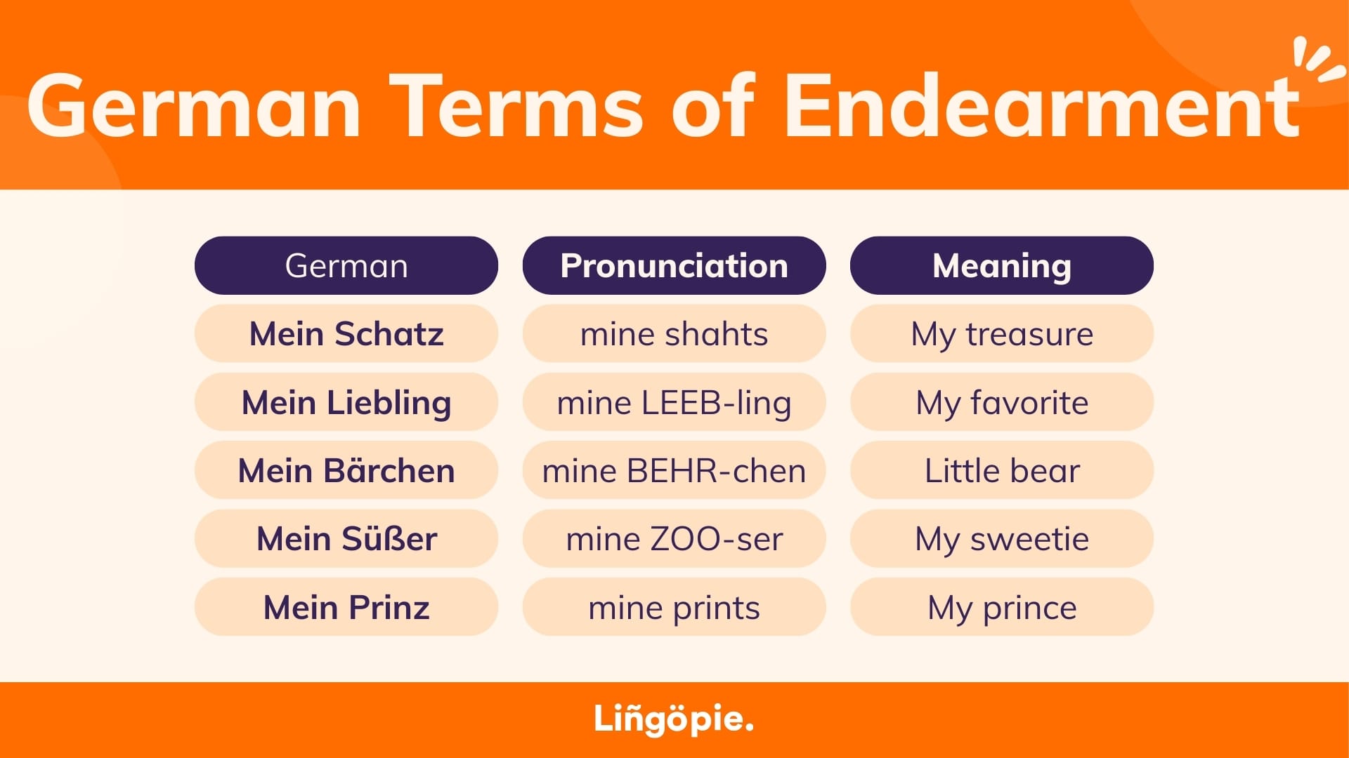 In this section, we'll cover a wide range of German endearments to suit different relationships and situations: