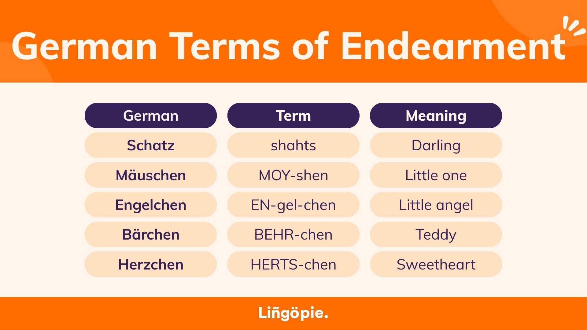 German speakers have a special trick to make terms of endearment even sweeter: diminutives. These are suffixes that, when added to a word, make it sound smaller, cuter, or more affectionate.