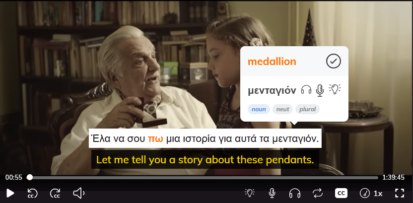 To go from passively understanding to actually retaining, you need to engage with the language while you watch. That's what Lingopie is built for. Watch Greek TV shows with interactive dual subtitles, click any word to get an instant translation, save vocabulary, and review with built-in flashcards and quizzes. It turns every episode into a lesson without feeling like one.