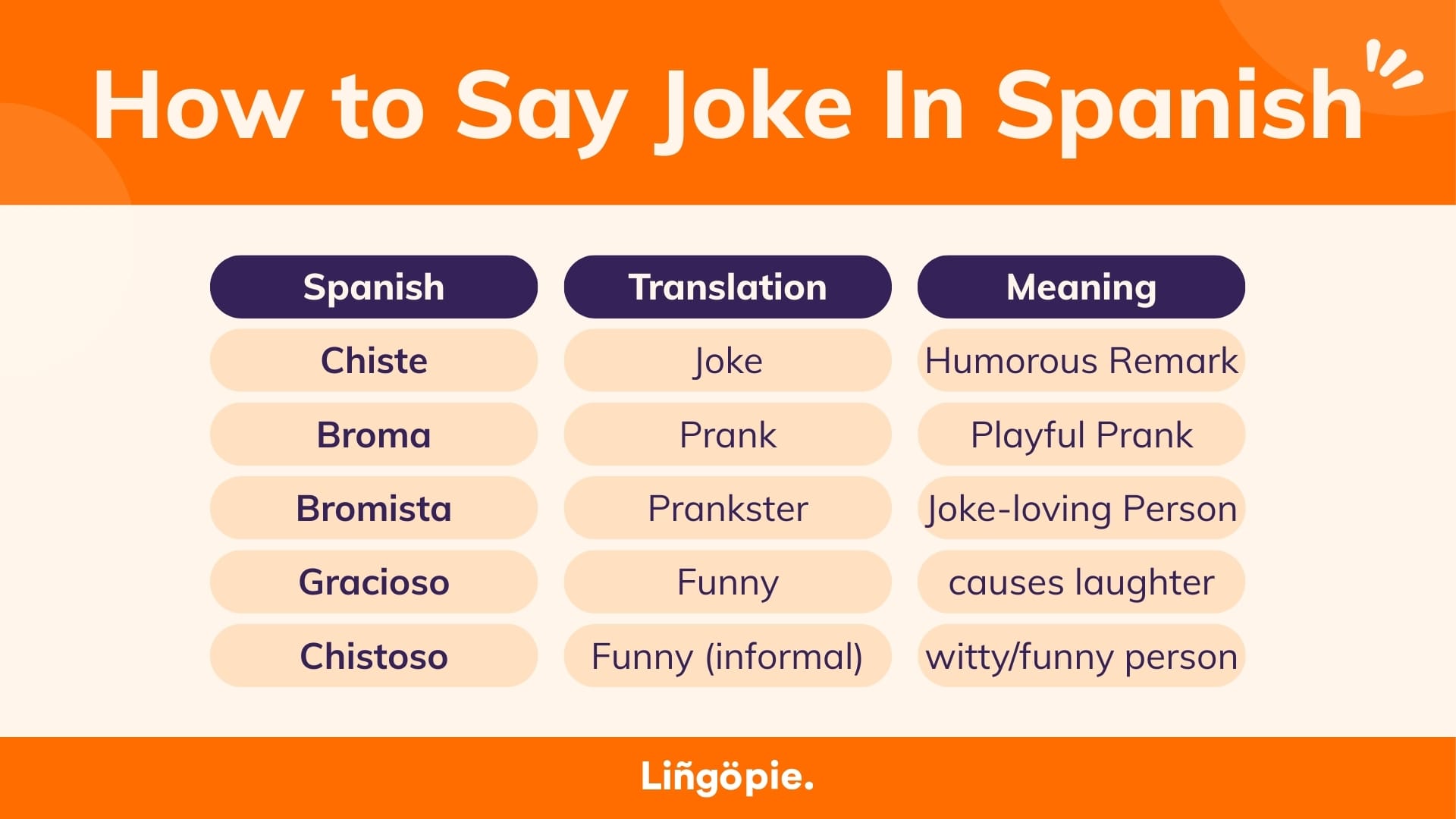 Want to make Spanish people crack? The good news here is that Spanish has a variety of terms related to jokes, ranging from casual jokes to witty remarks and playful pranks. Let’s explore some of these keywords and their meanings.