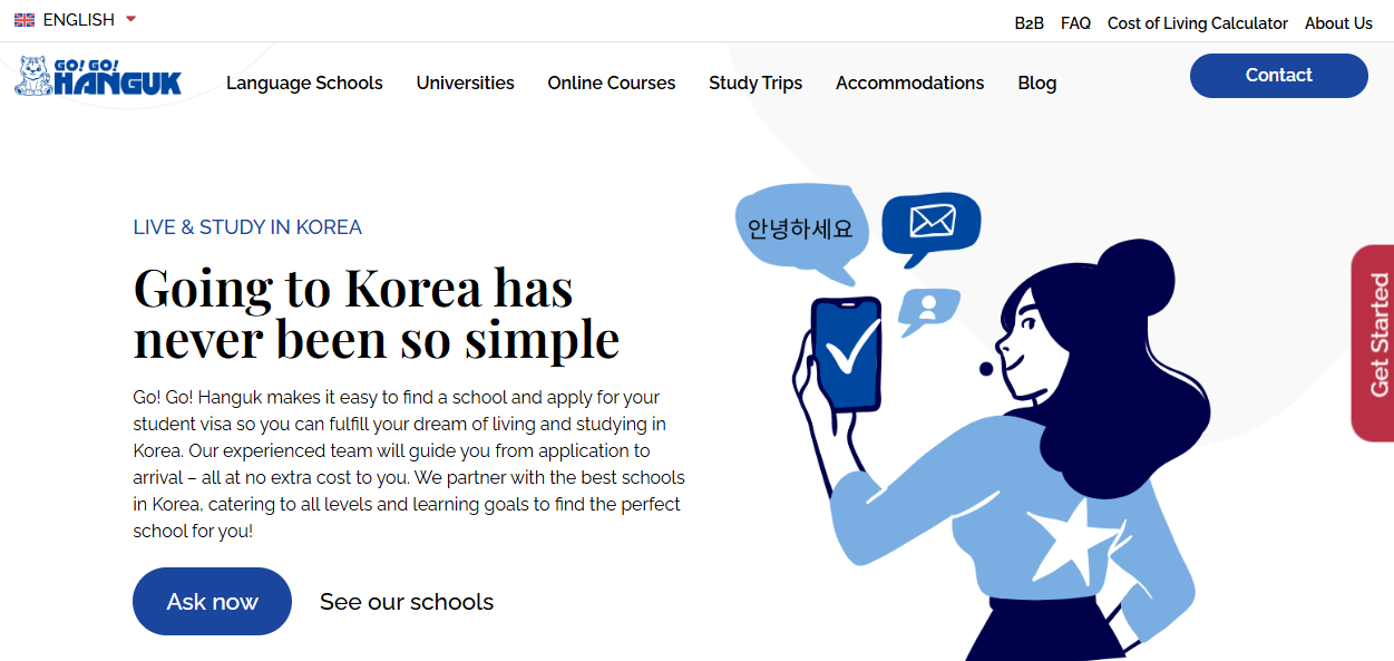 Go! Go! Hanguk connects international students with accredited Korean language schools and handles all logistics. Their study trips combine 20 hours of weekly Korean lessons with cultural activities like visiting Gyeongbokgung Palace, wearing hanbok, K-pop dance classes, and DMZ tours.