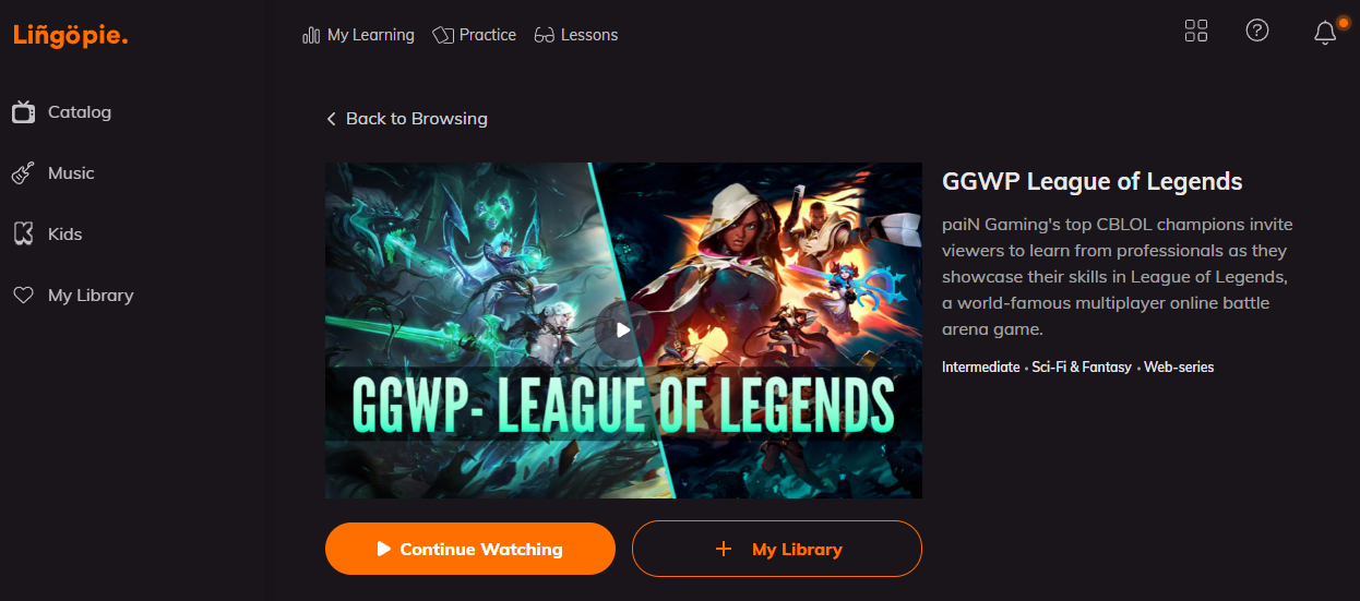 Platforms like Twitch and YouTube have tons of Brazilian League content, but if you want structured learning with interactive features, Lingopie's "GGWP League of Legends" series is a must-watch. Here, you're watching paiN Gaming's top CBLOL champions play at the highest level while learning Portuguese through real gameplay commentary—not scripted lessons.