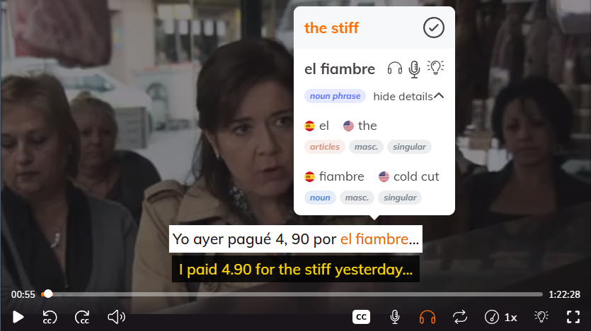 Once you can handle basic situations, you will start to understand more naturally. You can even find short everyday dialogues on Lingopie that match real-life scenarios so you can practice before you face them in person.