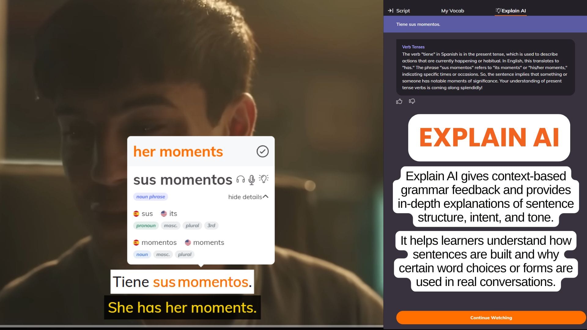 Lingopie’s grammar tools are designed for anyone who wants to understand how sentences actually work while watching real content. They’re especially helpful for learners who feel stuck between knowing grammar “rules” and being able to use them naturally in real conversations.