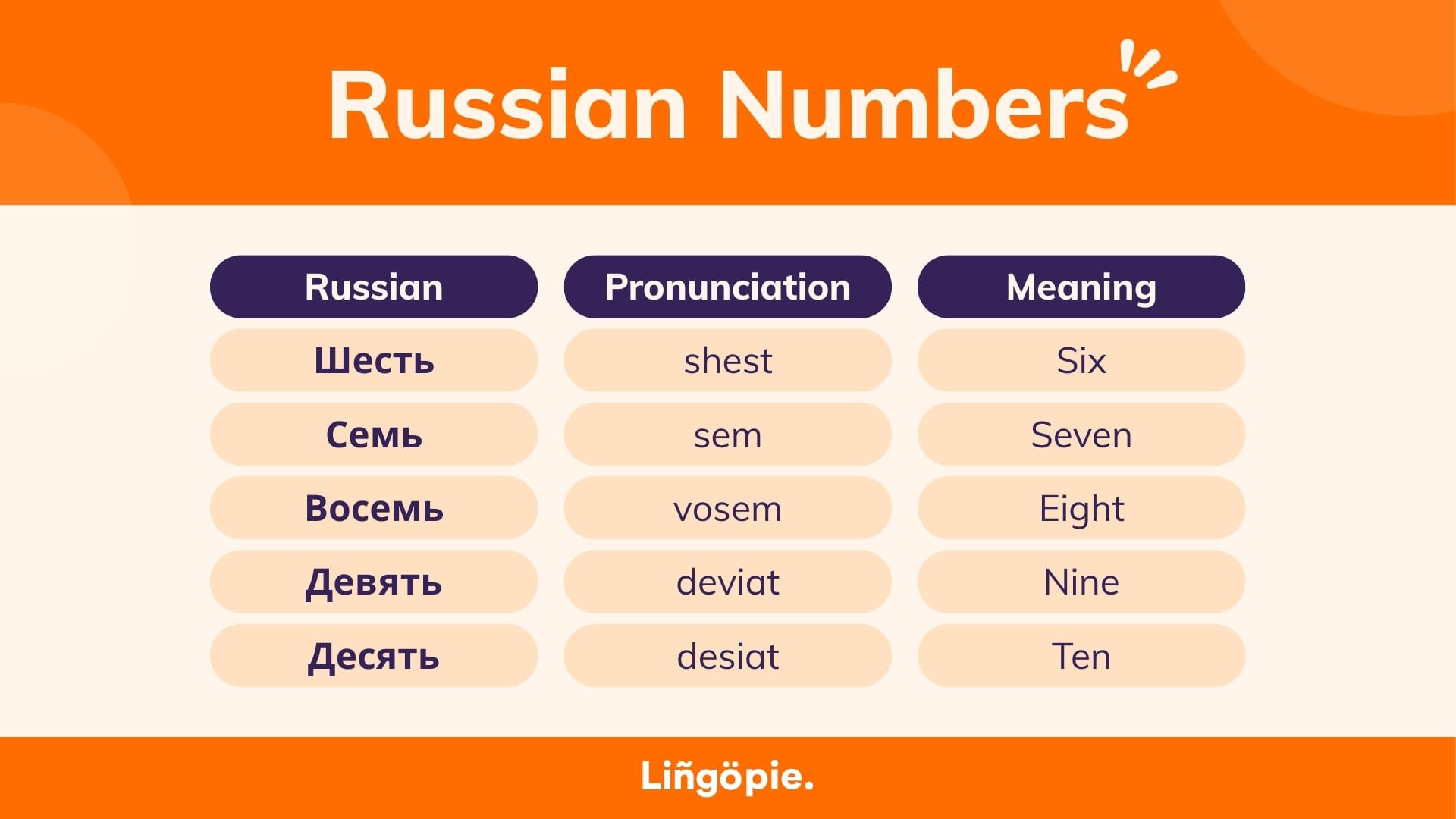 Russian numbers use the Cyrillic alphabet when written in words. For example, “7” is written as “семь.” In everyday life, Arabic numerals (1, 2, 3…) are also used, just like in English.
